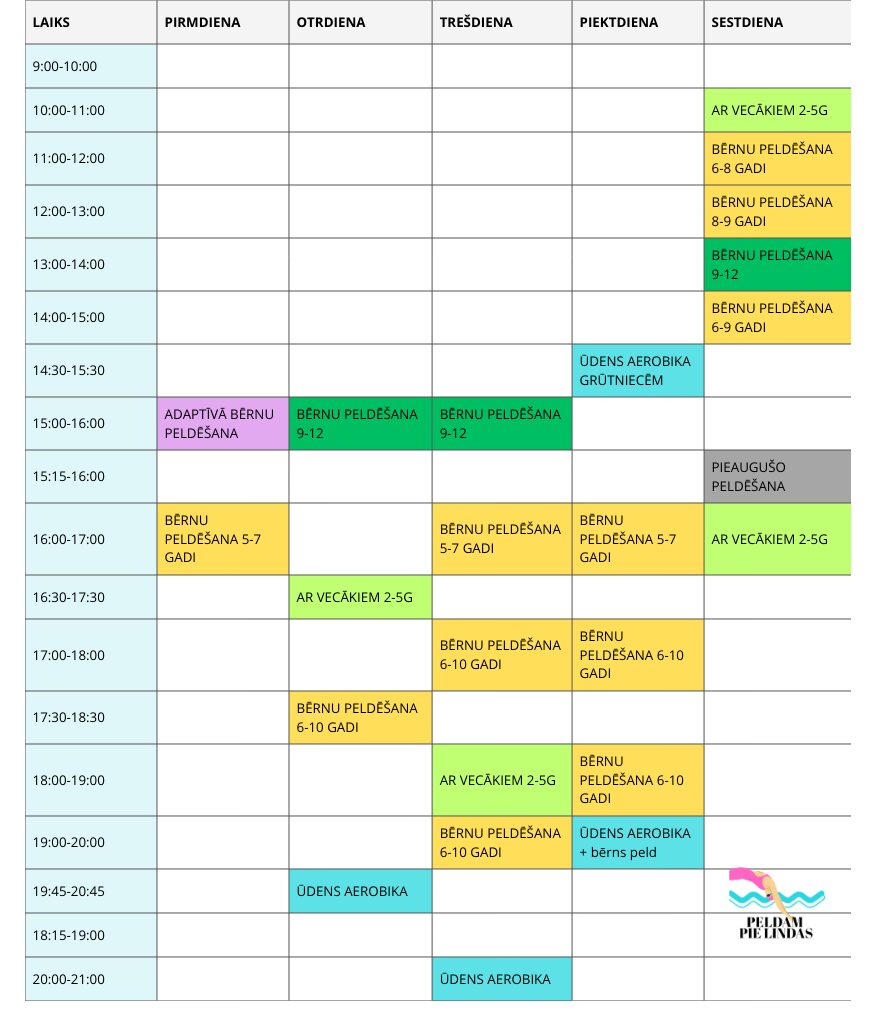 Nodarbības notiek "UplineSpa" Teikā, Ķeguma ielā 7, bērniem no 4 līdz 15 gadiem sekojošos laikos: